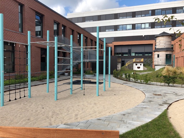 Skolen ligger lige ved siden af Sengeafsnit 1.