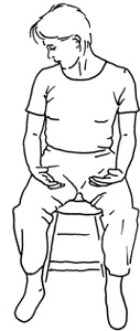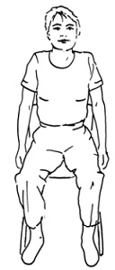 Sid på en stol med begge fødder på gulvet og ret ryg. Lad armene hænge ned langs kroppen.
