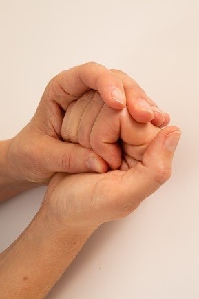Når du med lethed kan nå spidsen af lillefingeren, føres tomlen mod roden af lillefingeren.