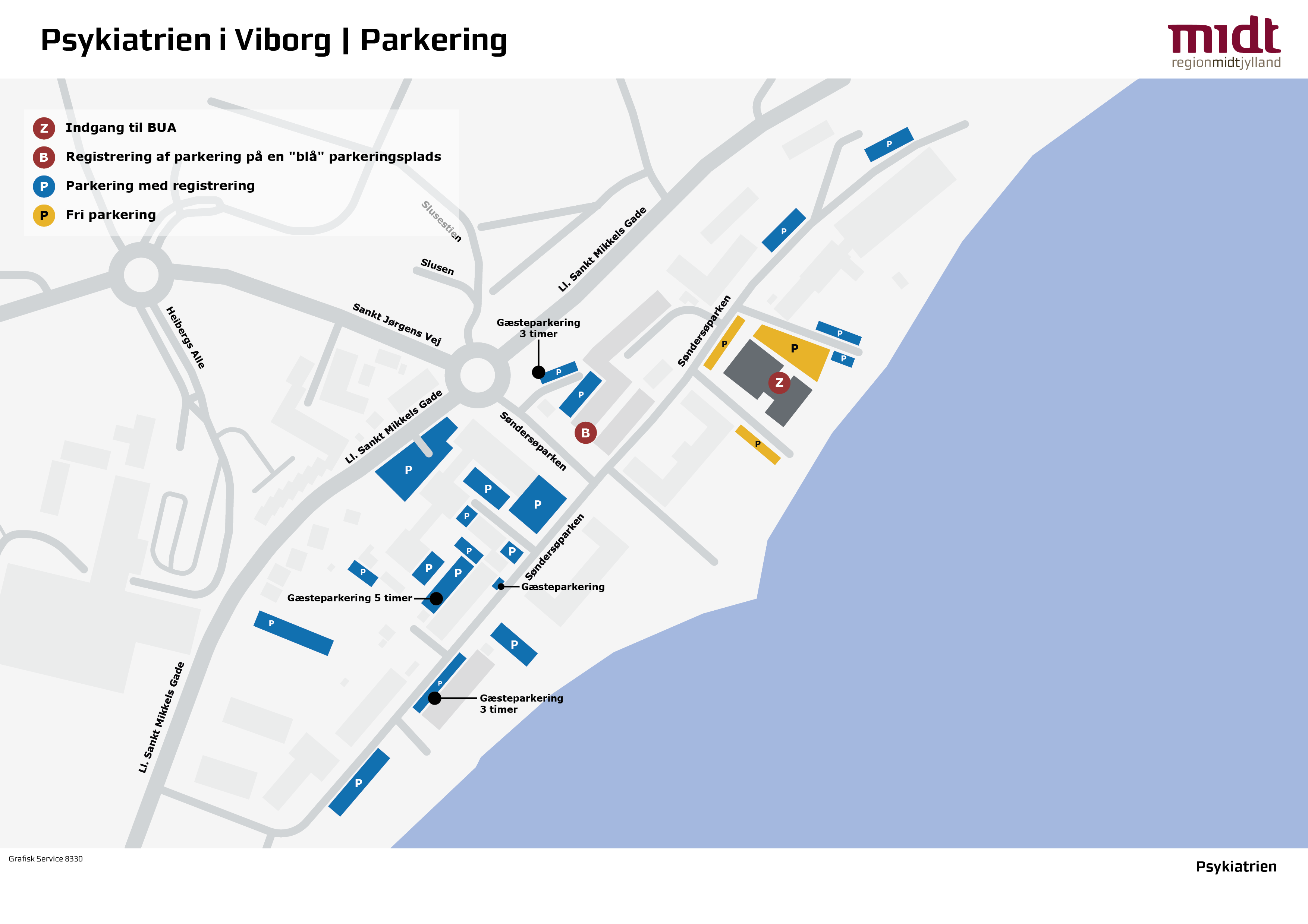 Det er gratis at parkere ved psykiatrien i Viborg, men det er vigtigt, at du registrerer din parkering, hvis du parkerer i tidsrummet 06.30-15.30 mandag til fredag.