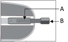 Implantatet stikker ud gennem huden via et metalrør (abutment) (B)